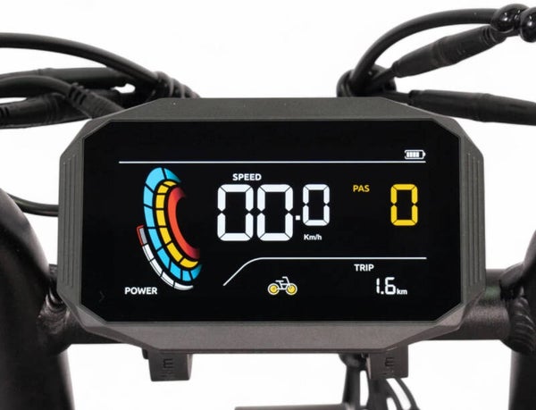 De Qmwheel Mini Fatbike Display is een geavanceerd bedieningspaneel dat de rij-informatie van de Qmwheel Mini Fatbike toont, zoals snelheid, accustatus, trapondersteuning en andere belangrijke gegevens. Het display maakt het eenvoudig om je rit te monitoren en de instellingen van de fiets te beheren, zodat je altijd de controle hebt over je rijervaring.